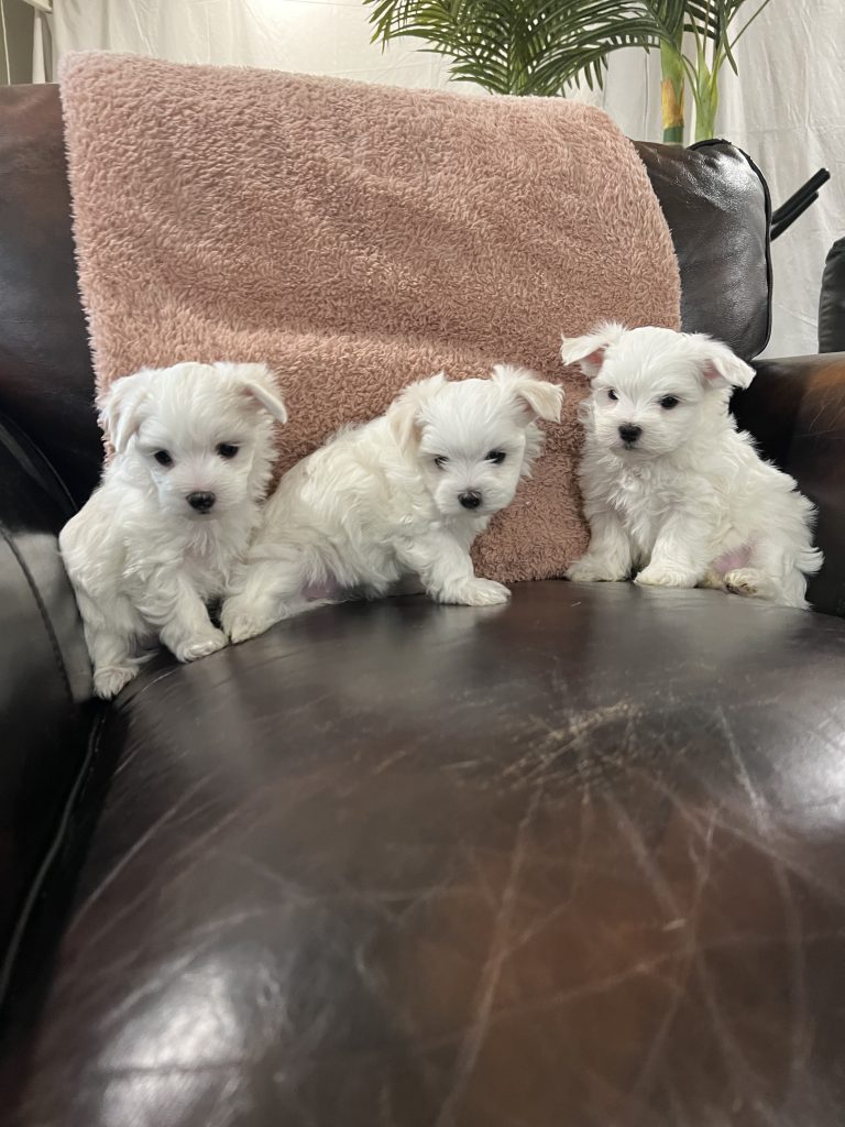 Three beautiful Maltese babies available for reservation! This is a lovely litter from a lovely mommy who is doting over their every move. One female and 2 Males available. Maltese are non-shedding and my puppies come from a very loving home and CLEAN environment. They are carefully handled daily with extra love and care. They are veterinary checked, current on healthcare including initial vaccines and preventative care.